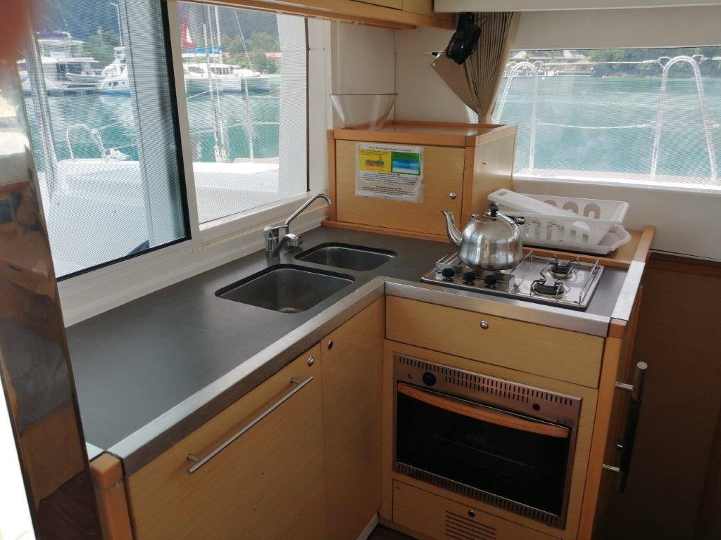 Cette unité nouvelle génération du chantier Lagoon est un excellent bateau alliant performances en navigation et confort de vie à bord . Lagoon a su allier comportement marin, confort et beau volume. La voilure haut perchée et le poste de pilotage en fly offrent un confort indéniable en navigations. Avec son foc auto-vireur, un plan de voilure plus équilibré et la nacelle en aile de mouette, les manœuvres sont faciles et les navigations se font en douceur. Le grand triangle avant offre un plus grand choix de voiles de portant pour une meilleure performance. Le plan de pont est simple et efficace pour contrôler les manœuvres principales directement depuis le poste de barre. Sur le pont, les larges passavants permettent de circuler en toute sécurité de l’arrière à l’avant du bateau. A l’intérieur tout est bien pensé et optimisé dans un ensemble ergonomique et luxueux. Les cabines sont spacieuses et l’espace de vie convivial et fonctionnel. Le Lagoon 39 présente toutes les caractéristiques d’un bateau bien pensé dans les moindres détails pour satisfaire les plaisanciers exigeants en mer comme au mouillage. Basé aux Seychelles, 235000€HT